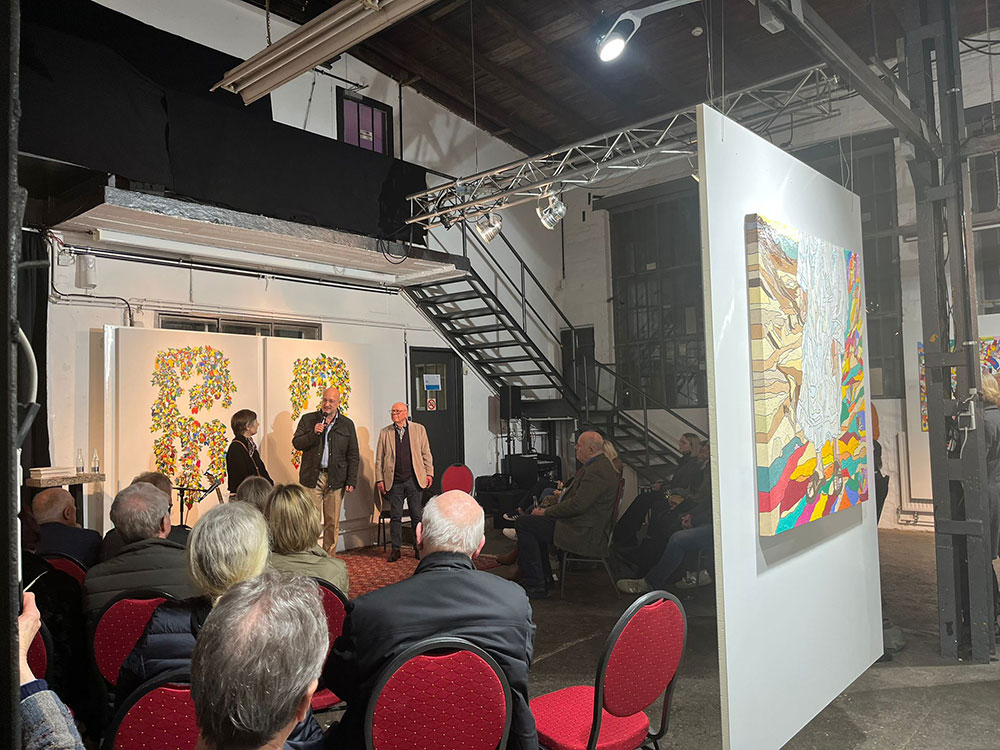 Behmel begeisterte mit seinen farbintensiven Arbeiten, in denen er Themen aus Glauben, Wissenschaft und Alltag miteinander verbindet. Begleitet von den musikalischen Klängen von „Déspina“ entstand eine offene, lebendige Atmosphäre, die den Dialog zwischen Kunst und Publikum förderte.
