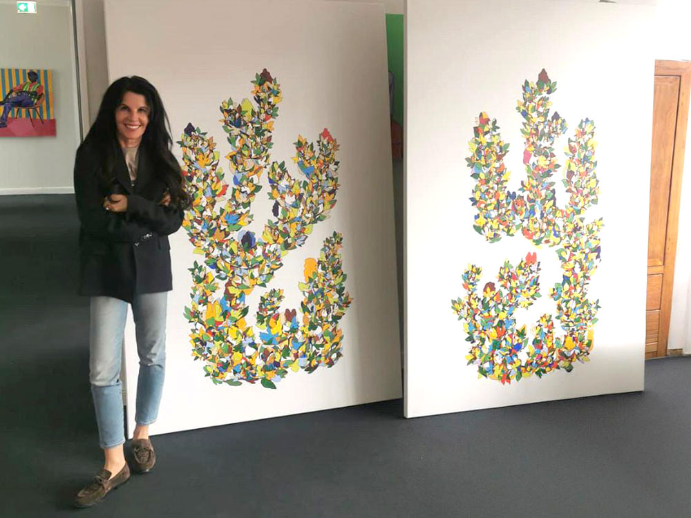 Ein besonders schöner Moment: Hans-Jürgen und Sandra Simchen fanden ihr Lieblingswerk in der Ausstellung und werden es in den Räumlichkeiten der Simchen Asset Management GmbH platzieren. Das just angelieferte Gemälde bringt nun täglich einen Hauch von Farbe und Inspiration in den Unternehmensalltag.